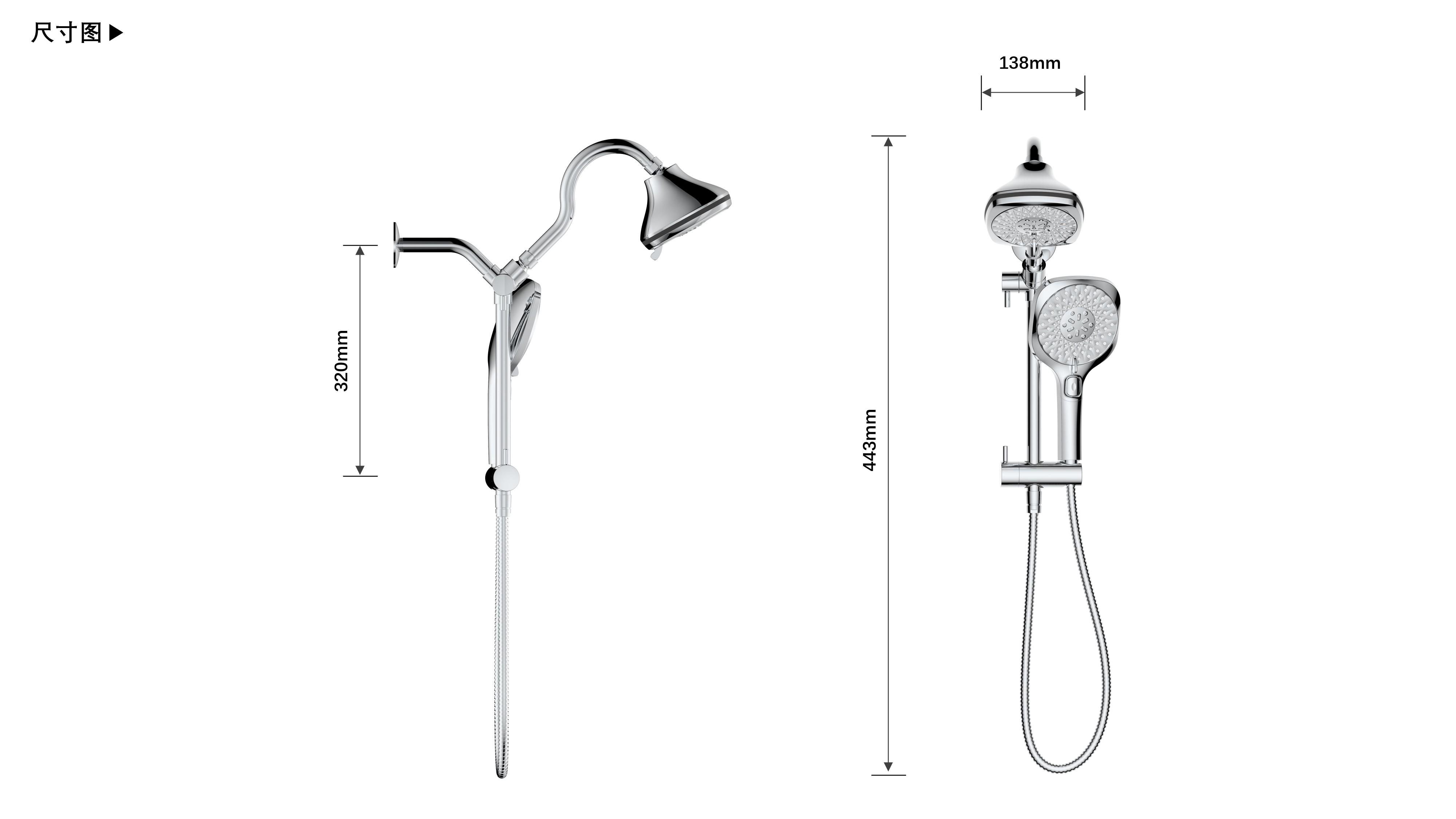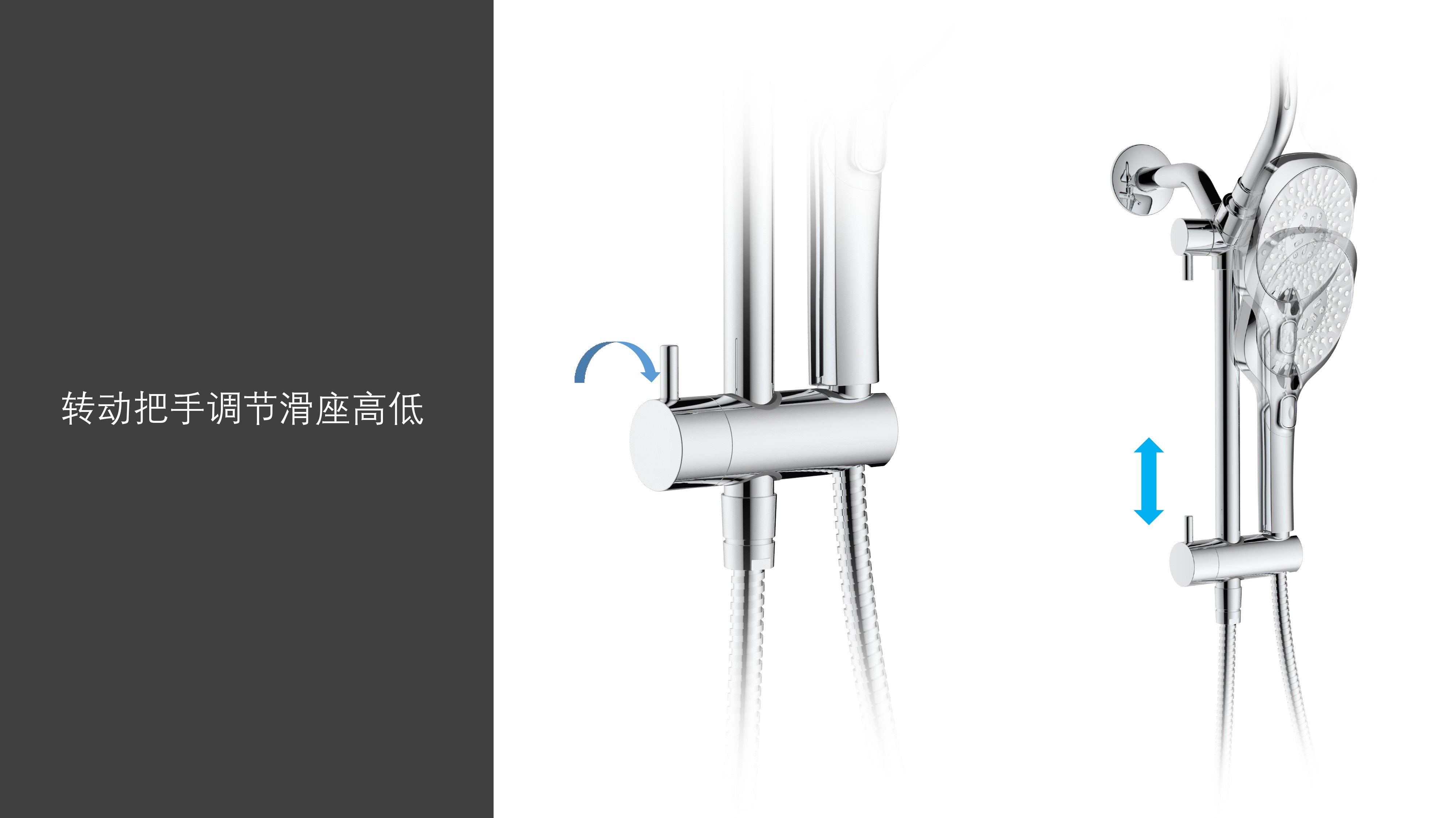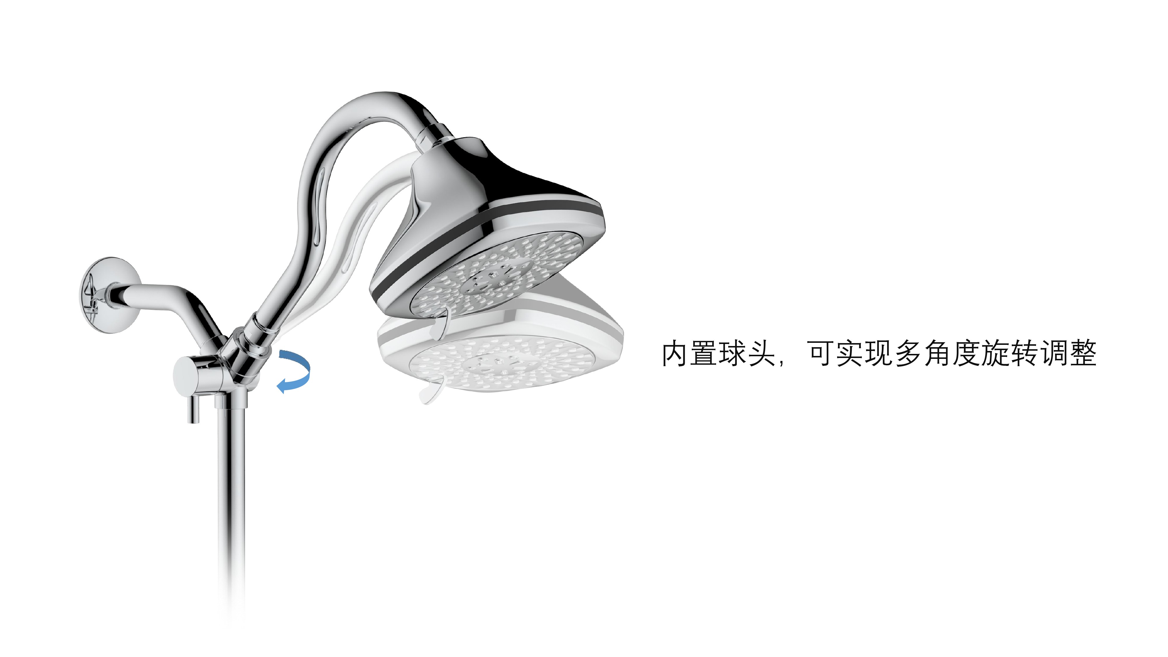 上出水彎管套裝;頂噴內(nèi)置球頭,可實(shí)現(xiàn)多角度旋轉(zhuǎn)調(diào)整;把手切換頂噴出水、花灑出水;轉(zhuǎn)動(dòng)把手調(diào)節(jié)滑座高低;8功能出水花灑