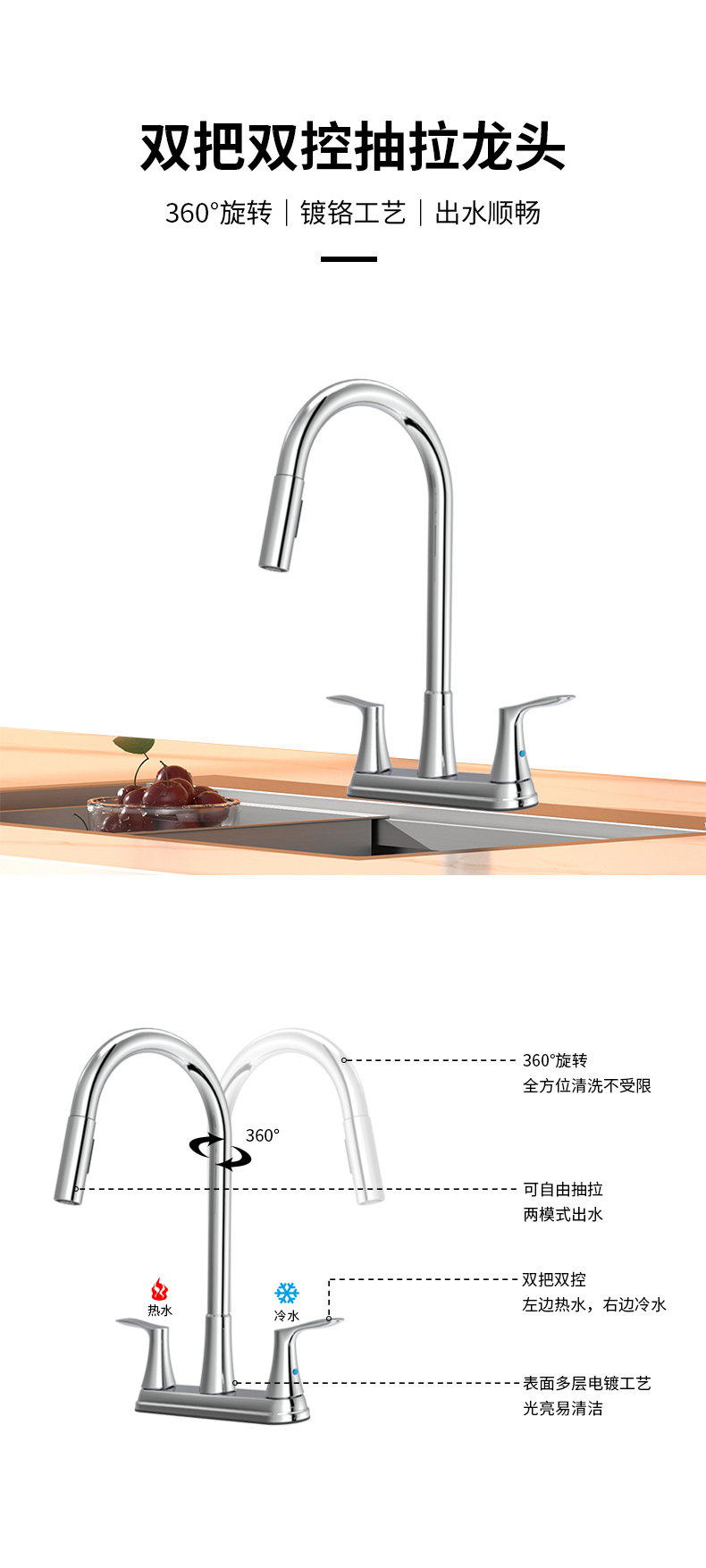 FK8205 雙把8”廚房抽拉龍頭