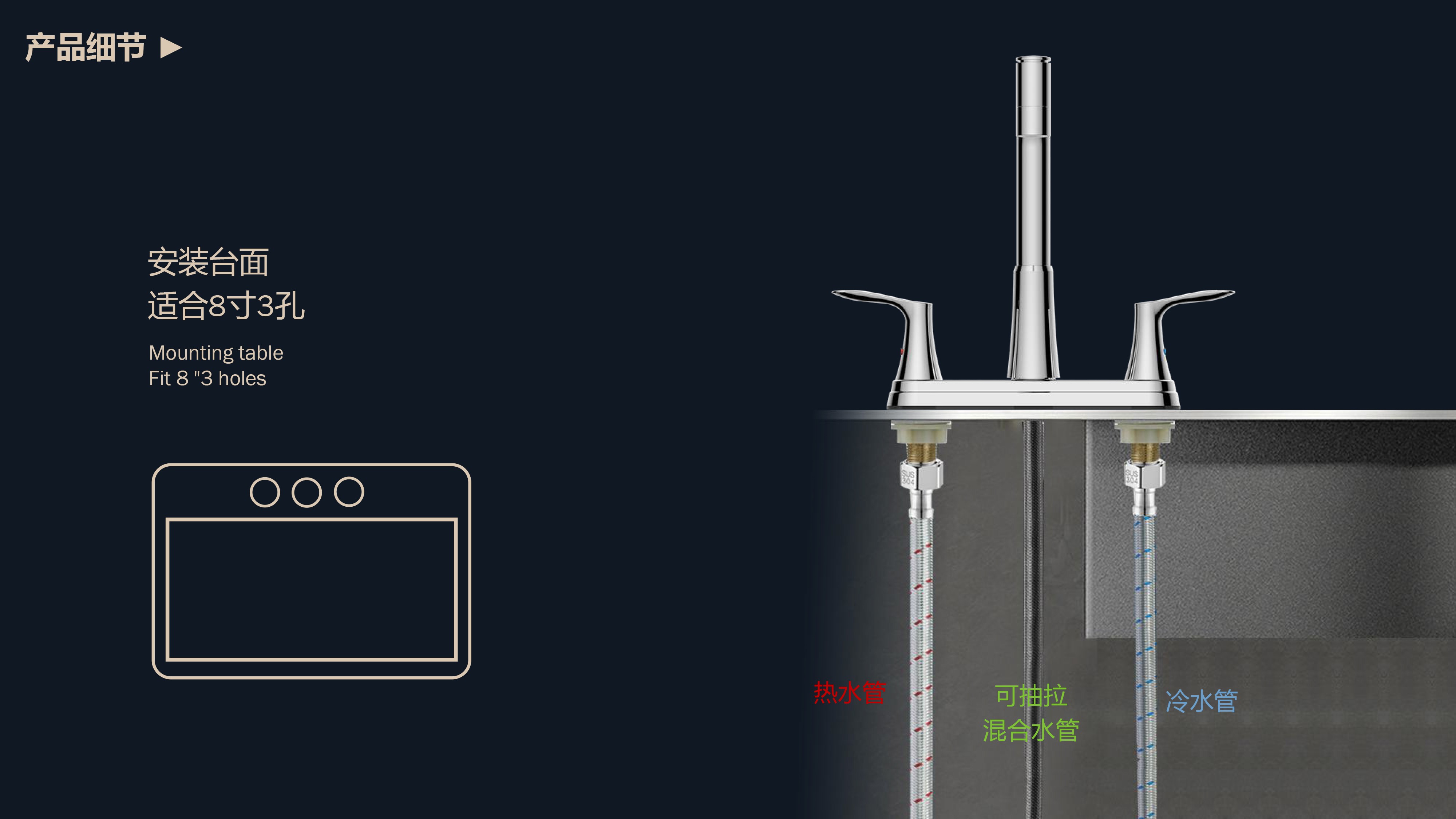 FK8205-B0 8”雙把 LED燈光顏色顯示水溫廚房抽拉龍頭