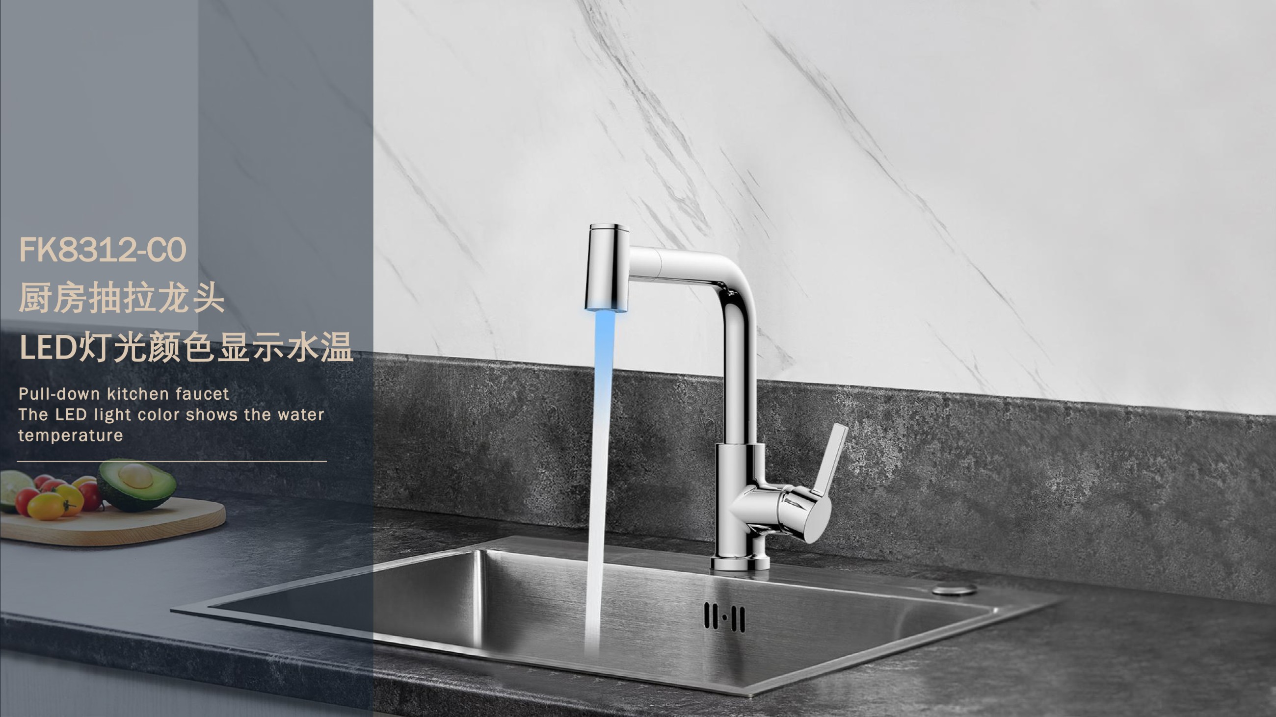 FK8312-C0 感溫LED廚房抽拉龍頭