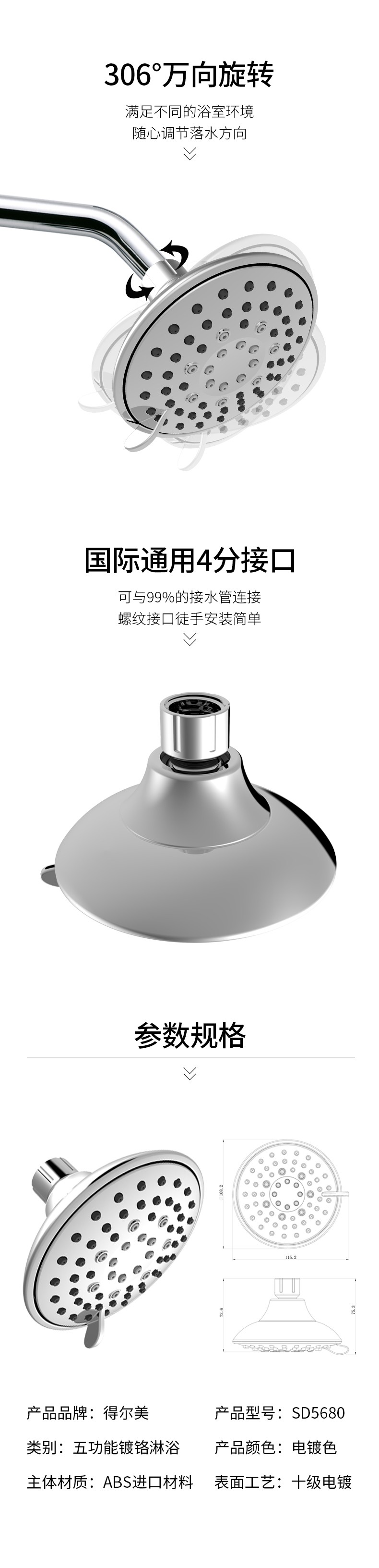 SD5680 5功能蓮蓬頭
